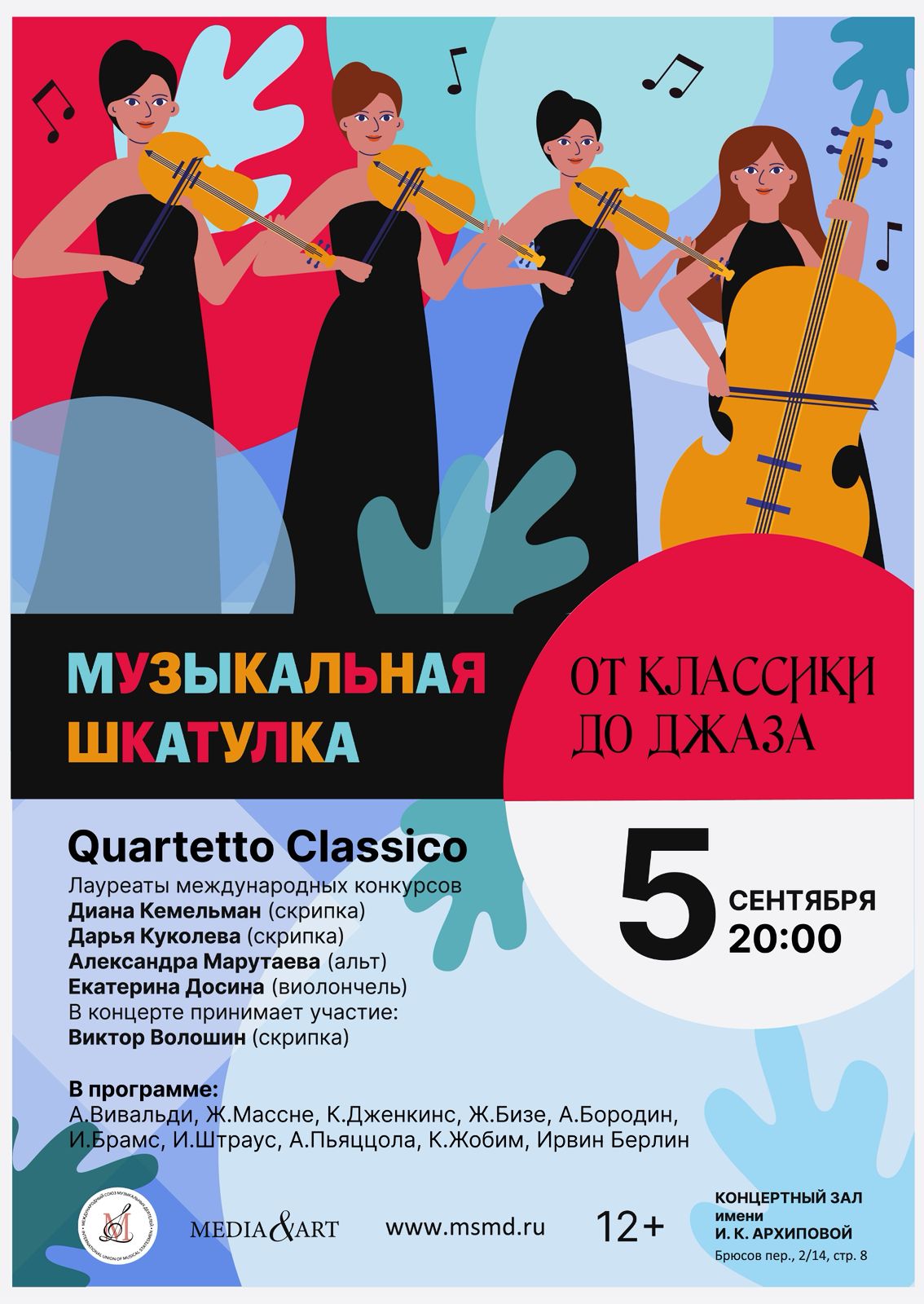 Это удивительное музыкальное путешествие в исполнении виртуозного струнного квартета Quartetto Classico — лауреатов международных конкурсов!