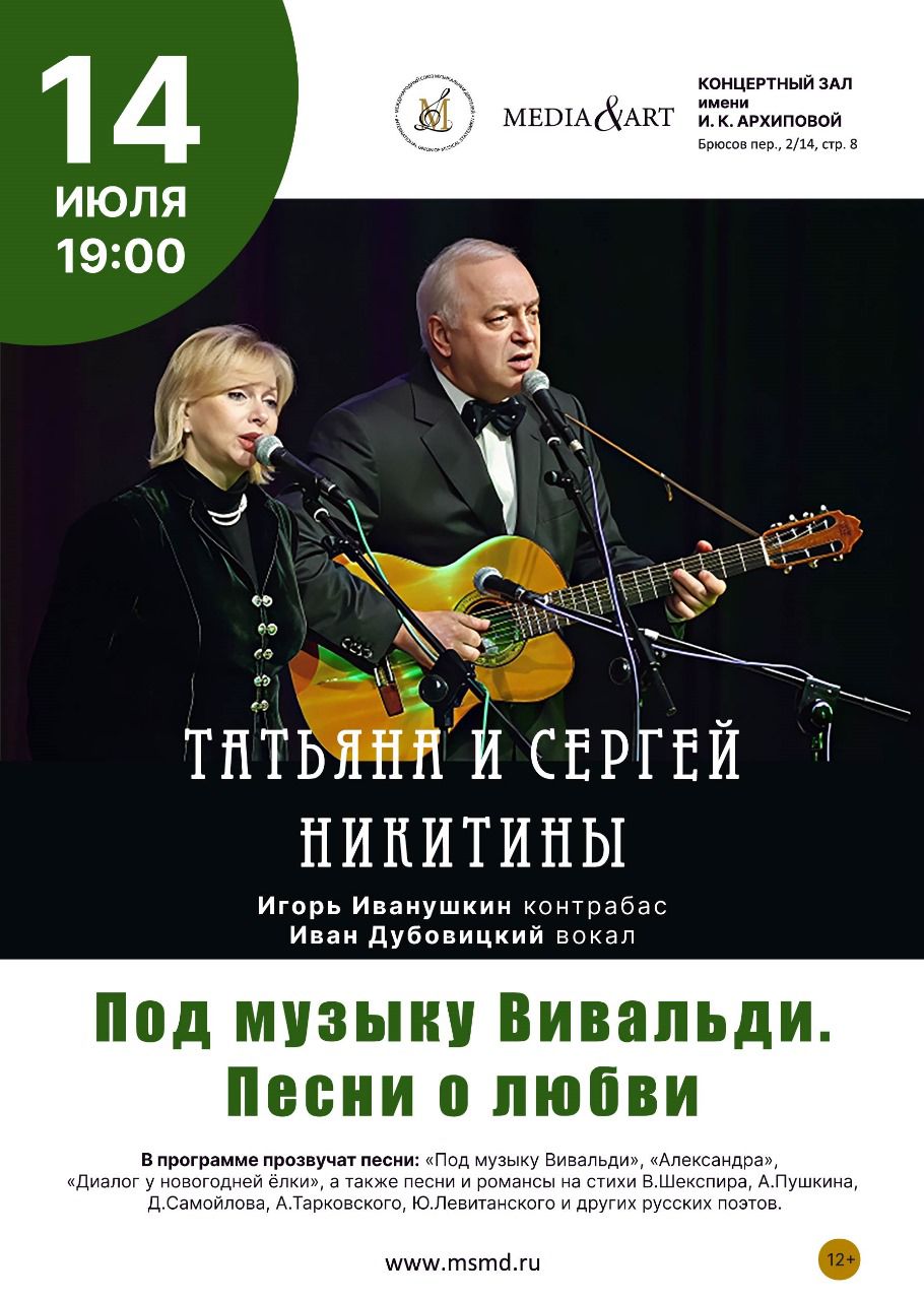 Известные советские и российские авторы и исполнители песен - Татьяна и Сергей Никитины выступят с концертом "Под музыку Вивальди. Песни о любви"