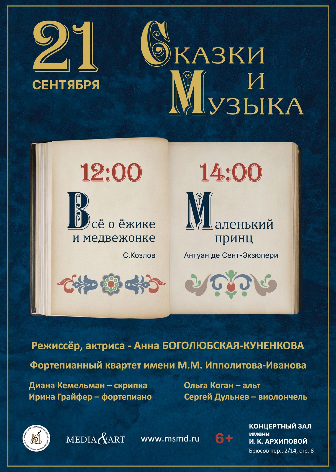 Сказки Сергея Козлова в окружении волшебного мира музыки даже в самую непогодь создадут атмосферу тёплого пледа, яркого камина и чашечки чая с обязательным мёдом, которым были бы не прочь угоститься Ежик и Медвежонок.