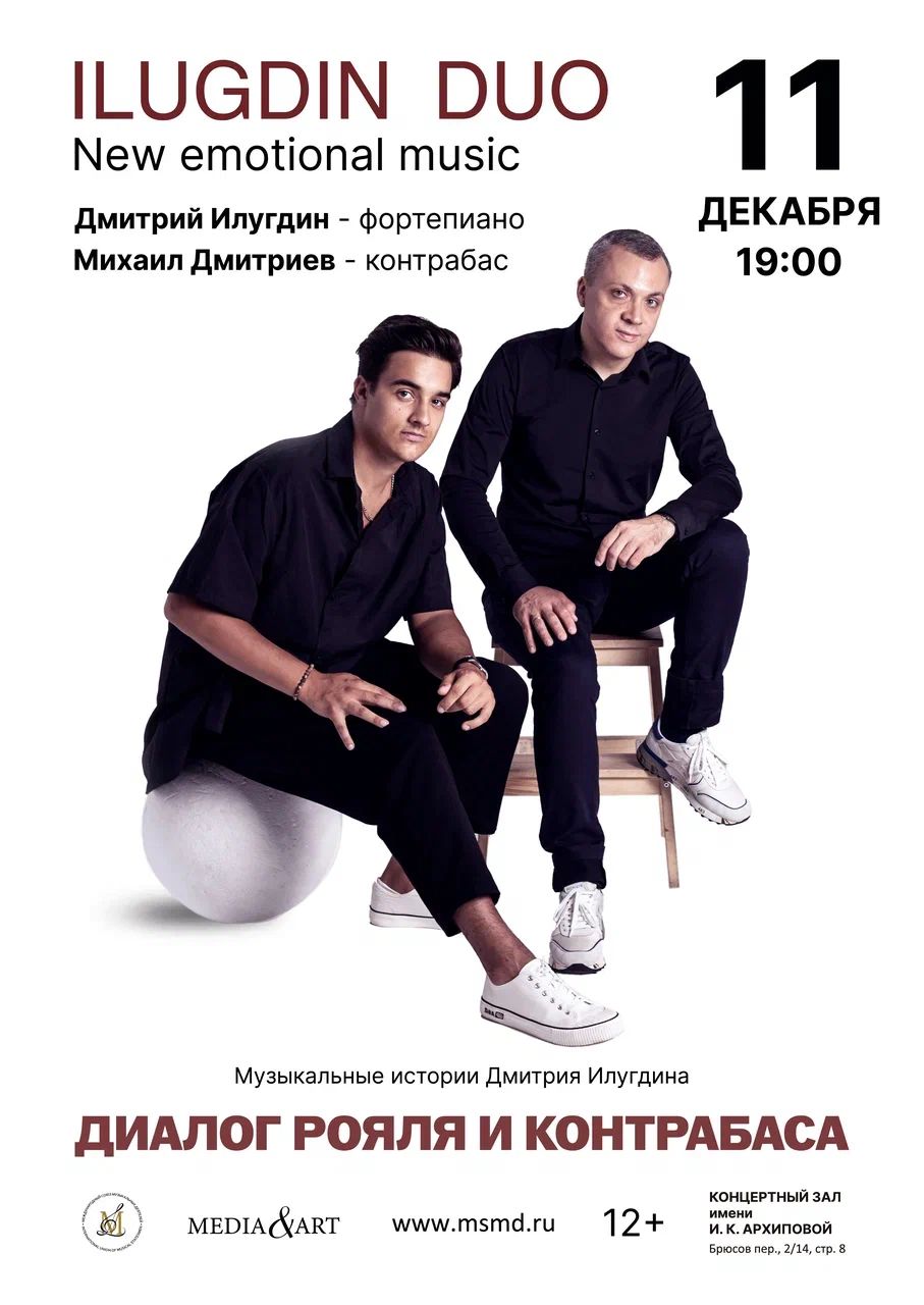 11 декабря в Концертном зале имени Ирины Архиповой прозвучит премьера дуэтной программы Дмитрия Илугдина для фортепиано и контрабаса — ILUGDIN DUO, объединяющая глубину академии, драматургию кино и свободу джаза.