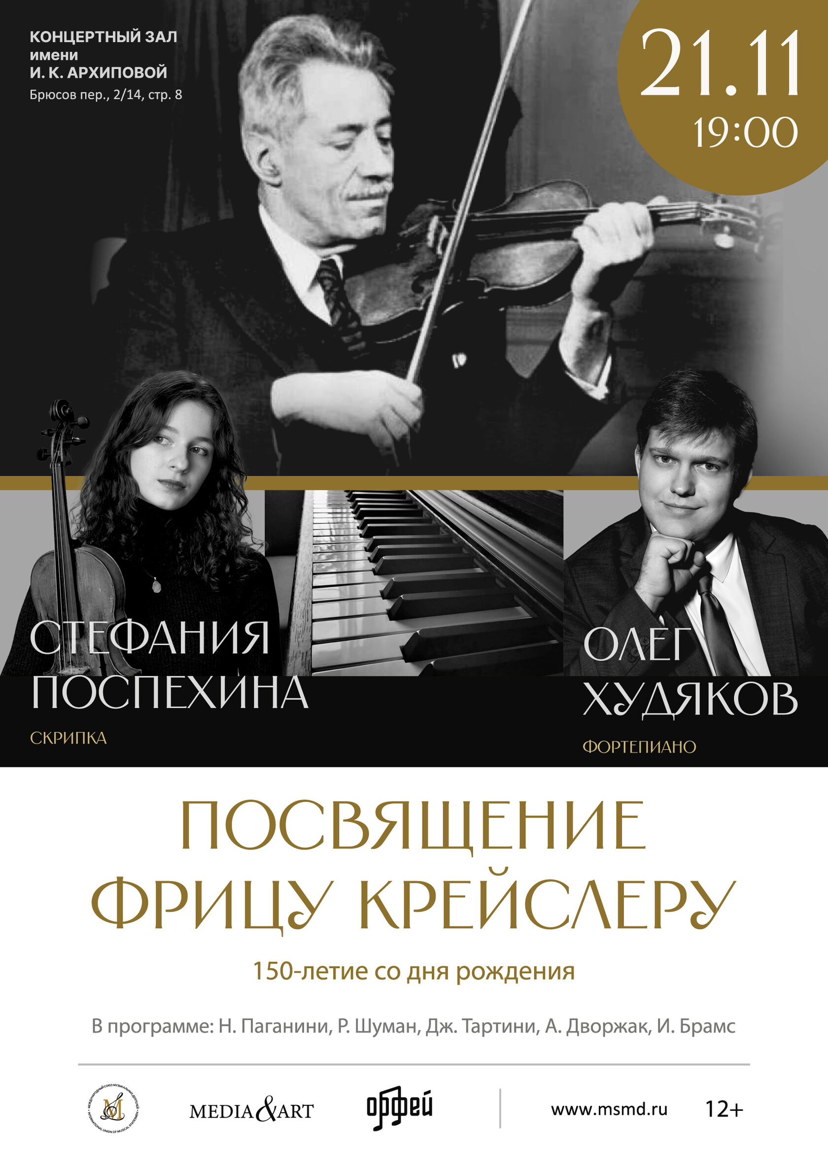 В ноябре 2025 года музыкальный мир отмечает 150‑летие со дня рождения Фрица Крейслера — выдающегося австрийского скрипача и композитора, чьё искусство навсегда изменило представление о скрипичной технике и интерпретации. В честь этой знаменательной даты в Концертном зале имени Ирины Архиповой пройдёт вечер камерной музыки.