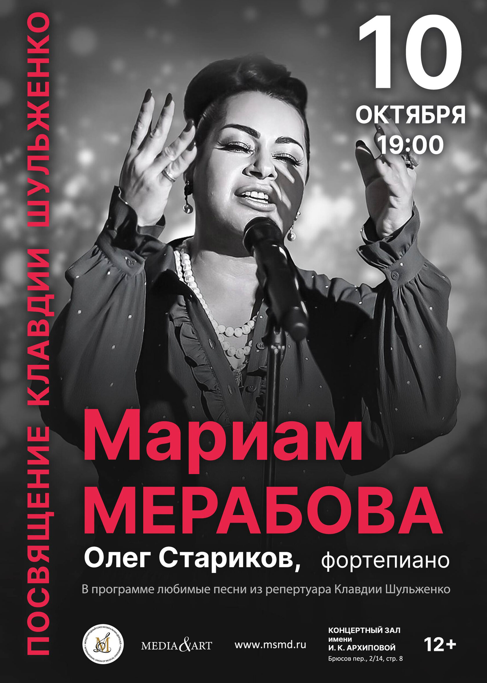 Мариам Мерабова, известная своим неповторимым голосом и эмоциональной подачей, представит программу, в которую войдут любимые песни из репертуара Клавдии Шульженко.